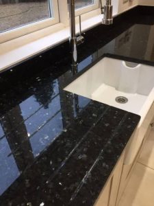 Labradore Granite is a very hard wearing stone and is ideal for a variety of uses. It features a black base colour with hints of emerald green throughout, perfect if you require something a little different to the sheer black worktop. This shimmering granite can complement almost any style and colour combination including modern white and cream high gloss kitchen cabinets as well as various shades of oak wood cabinets. The Granite is a durable and hard wearing stone which is easy to maintain. It is ideal for a variety of uses in high traffic areas both in the home and business.