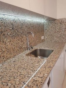 In buildings aspiring to spectacular facades, as sculptural countertops in modern bathrooms and kitchens and, from now on, any space in the home. Rosavel granite takes a definitive leap into domestic interiors on its own merits: the spectacular beauty of its surface, whose irregular fracturing is caused by the thousands of mega-crystals that dot it and by the size of its grain, some of them as much as 60 mm. Its image has something of the Roman mosaic about it and its rosewood colour reinforces its poetic language.